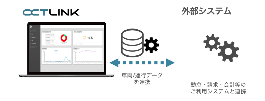 デジタコで取得したデータをもとに、自動で各種レポートを生成します。さらにデジタコのデータを労務管理ソフト等のシステムに連携することもできるため、業務全体の効率化に役立ちます。